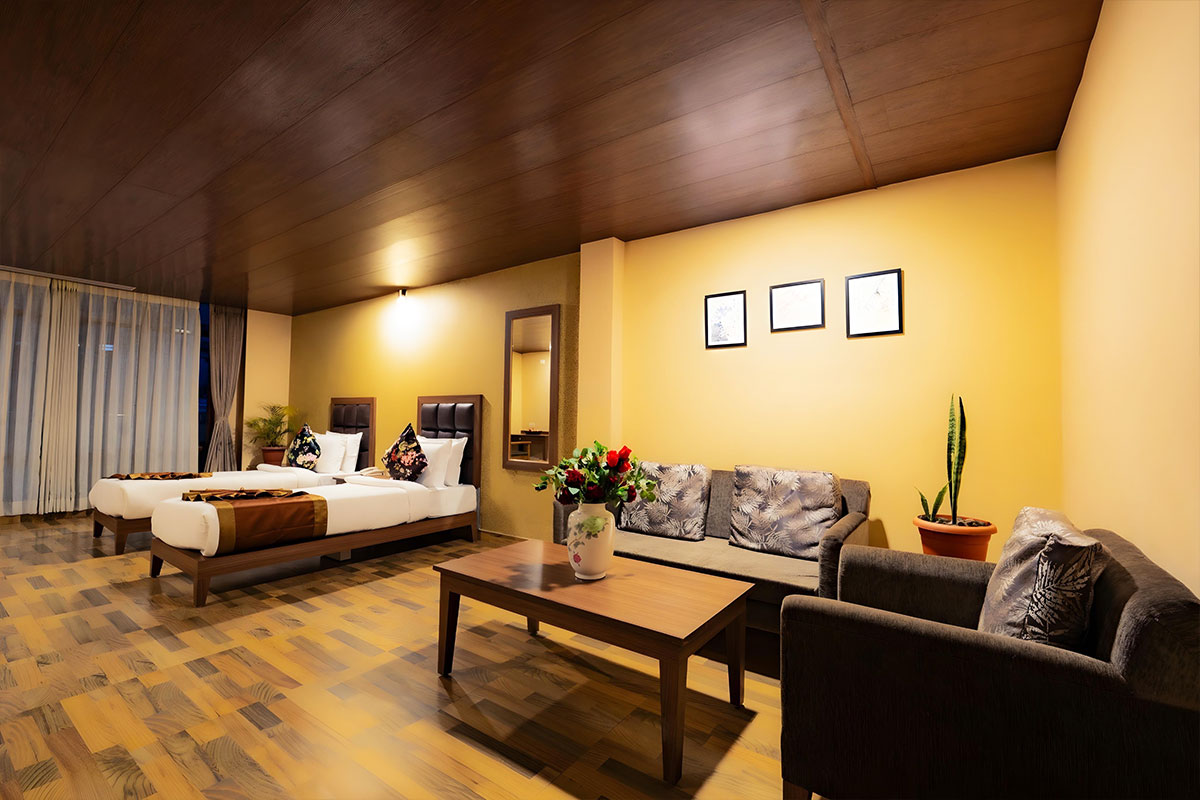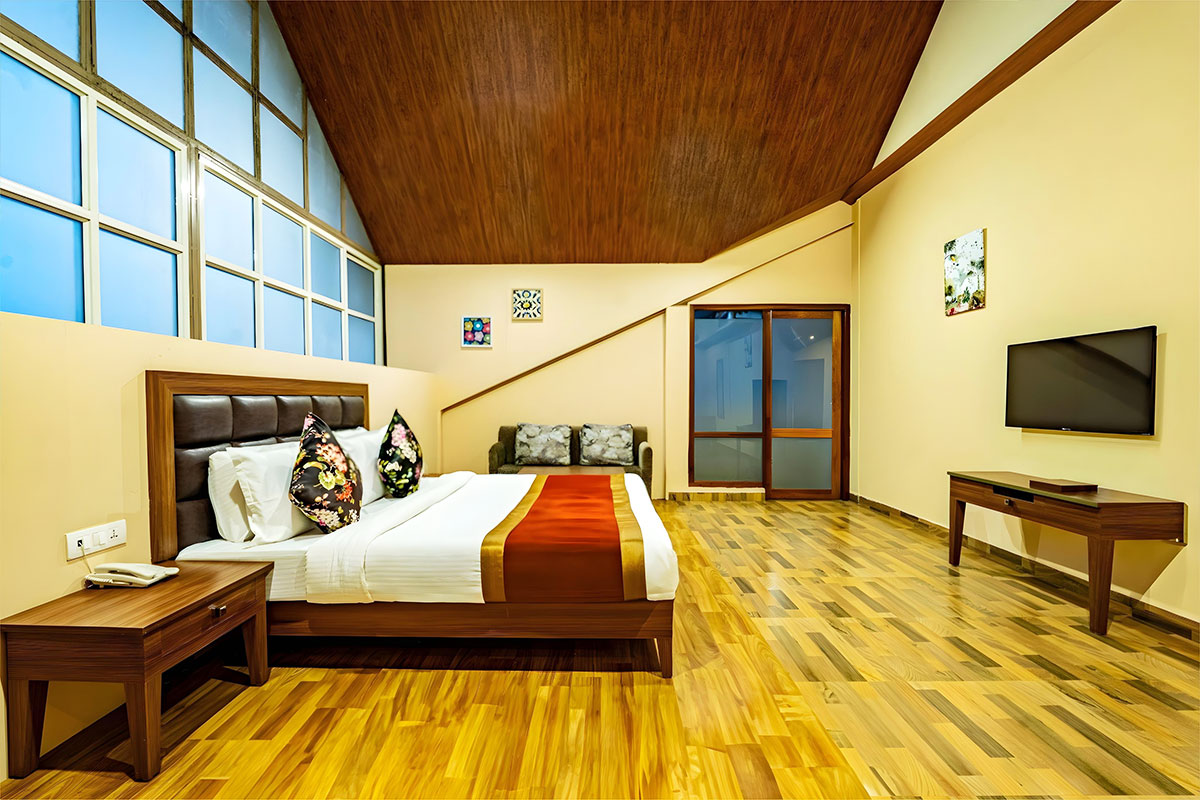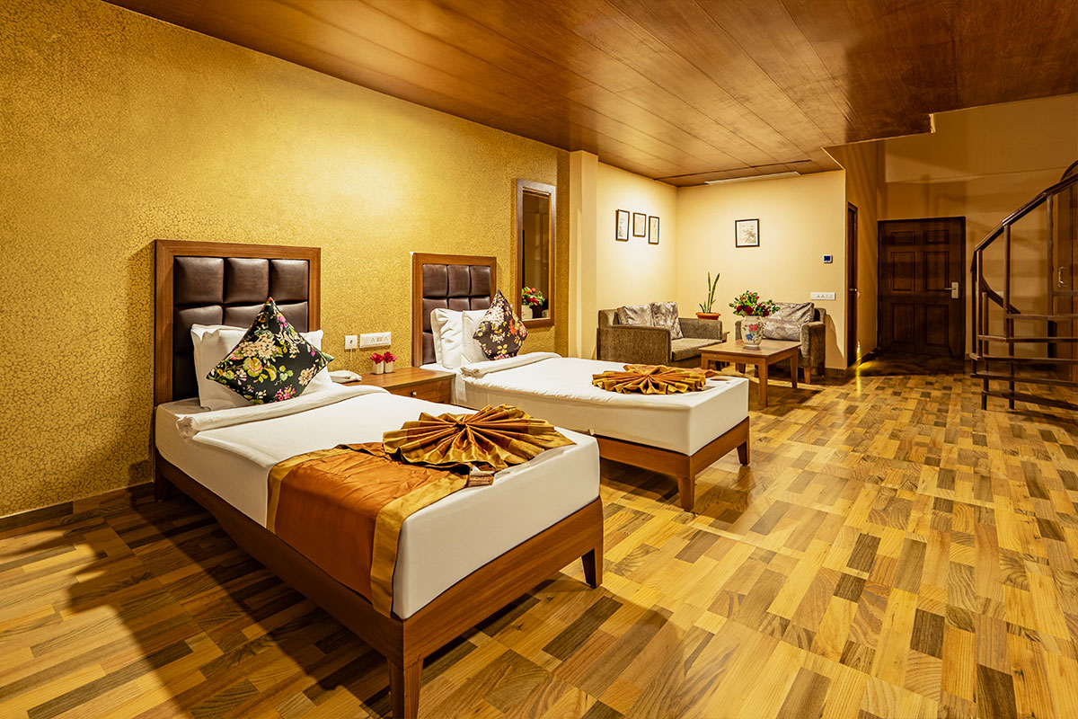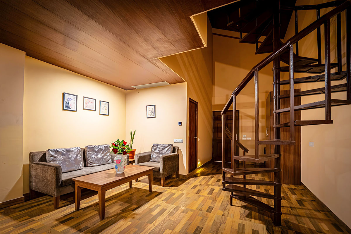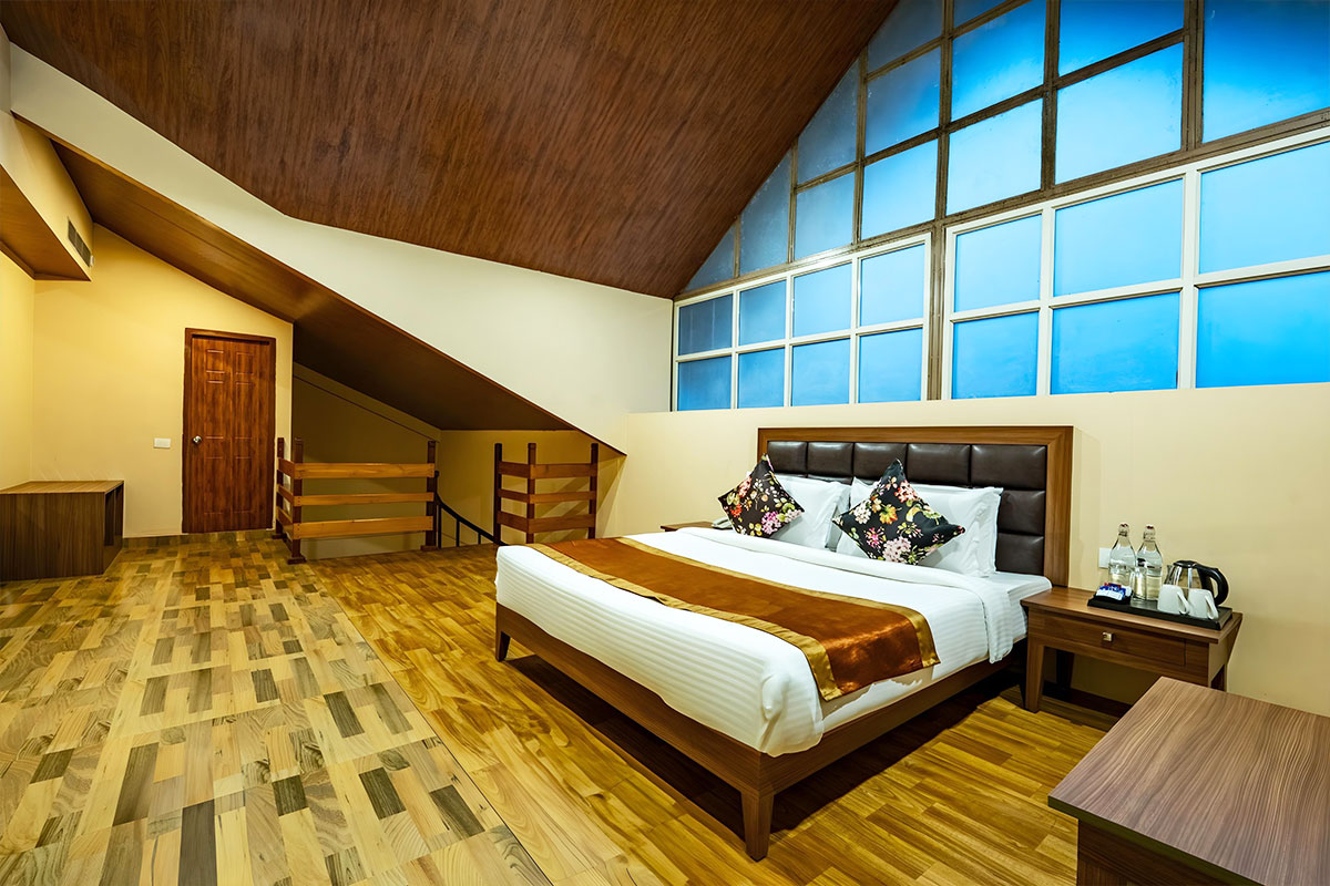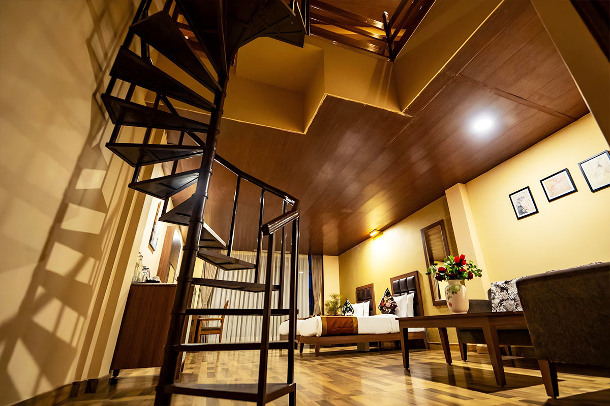 For those who crave a unique stay, our Attic Duplex Room with a Side Balcony offers a distinctive and spacious layout with a cozy attic-style setting. Designed for relaxation and indulgence, this room comes with a plush double bed, a comfortable seating area, and premium amenities like air conditioning, a flat-screen TV, and an electric kettle. Ideal for couples or small families, this duplex-style accommodation provides an intimate yet luxurious retreat, ensuring an unforgettable experience.
